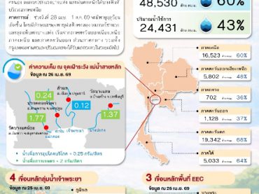 สรุปสถานการณ์น้ำภาพรวมของประเทศ วันที่ 25 เม.ย. 69 เวลา 7.00 น. 25 เมษายน 2026Thailandplusประชาสัมพันธ์
