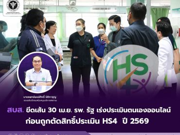 สบส. ขีดเส้น 30 เม.ย. รพ. รัฐ เร่งประเมินตนเองออนไลน์ ก่อนถูกตัดสิทธิ์ประเมิน HS4 ปี 2569 26 เมษายน 2026Thailandplusคุณภาพชีวิต