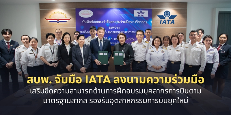 สบพ. จับมือ IATA ลงนามความร่วมมือ เสริมขีดความสามารถด้านการฝึกอบรมบุคลากรการบินตามมาตรฐานสากล รองรับอุตสาหกรรมการบินยุคใหม่
