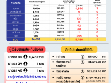 สำนักงานประกันสังคมให้ความช่วยเหลือผู้ประกันตนจากสถานการณ์อุทกภัย 9 จังหวัดภาคใต้ พร้อมเร่งเยียวยาผู้ได้รับผลกระทบอย่างทั่วถึง
