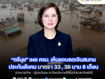 ครม. เห็นชอบลดส่งเงินสมทบประกันสังคม ม.33 ม.39 ยาว 6 เดือน ตั้งแต่ ธ.ค.68 ถึงงวด พ.ค. 69 ตามที่กระทรวงแรงงานเสนอ “ตรีนุช” เร่งผลักดันมาตรการช่วยนายจ้าง ลูกจ้างผู้ประกันตน ในพื้นที่ประสบภัยพิบัติอย่างร้ายแรง 9 จังหวัดภาคใต้