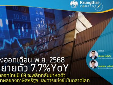 ส่งออกเดือน พ.ย. 2568 ขยายตัว 7.1%YoY ส่งออกไทยปี 69 จะพลิกกลับมาหดตัว จากผลของภาษีสหรัฐฯ และการแข่งขันในตลาดโลก