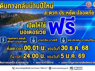 เปิดวิ่งฟรี 7 วัน! มอเตอร์เวย์ M7 – M9 รับเทศกาลปีใหม่ 2569 บรรเทาจราจร หนุนเดินทาง–ท่องเที่ยว–โลจิสติกส์