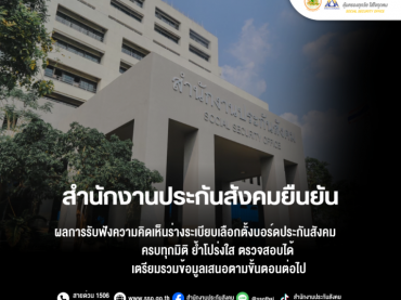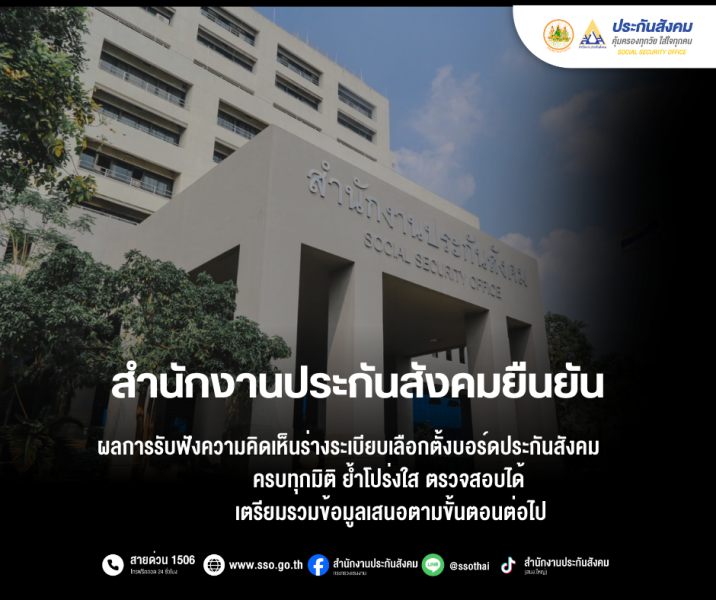 สำนักงานประกันสังคม ยืนยันผลการรับฟังความคิดเห็นร่างระเบียบเลือกตั้งบอร์ดประกันสังคม ครบทุกมิติ ย้ำโปร่งใส ตรวจสอบได้ เตรียมรวมข้อมูลเสนอตามขั้นตอนต่อไป