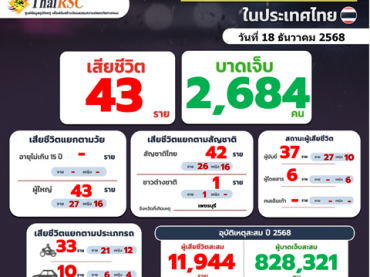 สถานการณ์อุบัติเหตุทางถนนในประเทศไทย วันที่ 18 ธ.ค.68