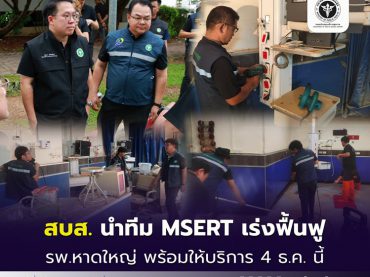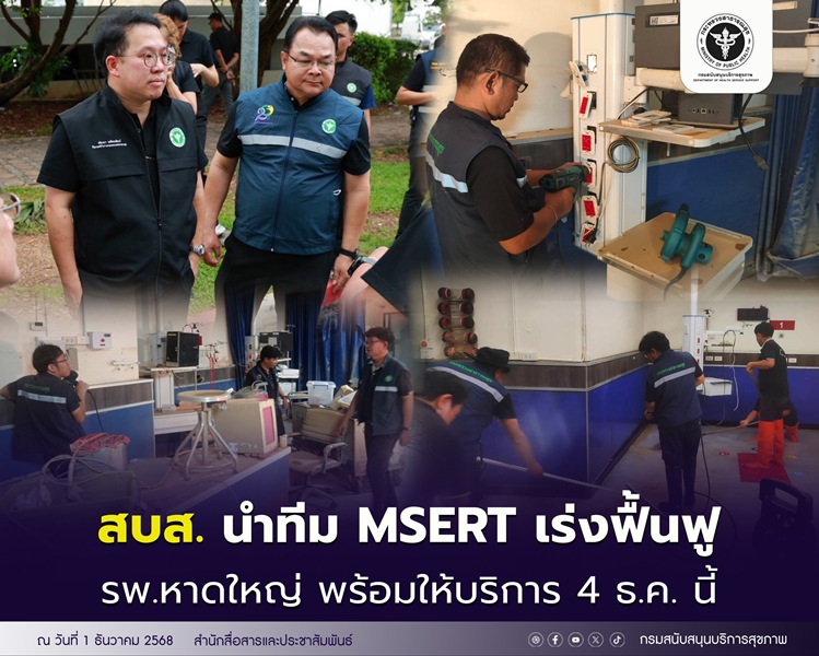 สบส. นำทีม MSERT เร่งฟื้นฟู รพ.หาดใหญ่ เตรียมพร้อมให้บริการ 4 ธ.ค. นี้