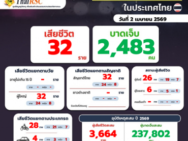 สถานการณ์อุบัติเหตุทางถนนในประเทศไทย วันที่ 2 เม.ย.69